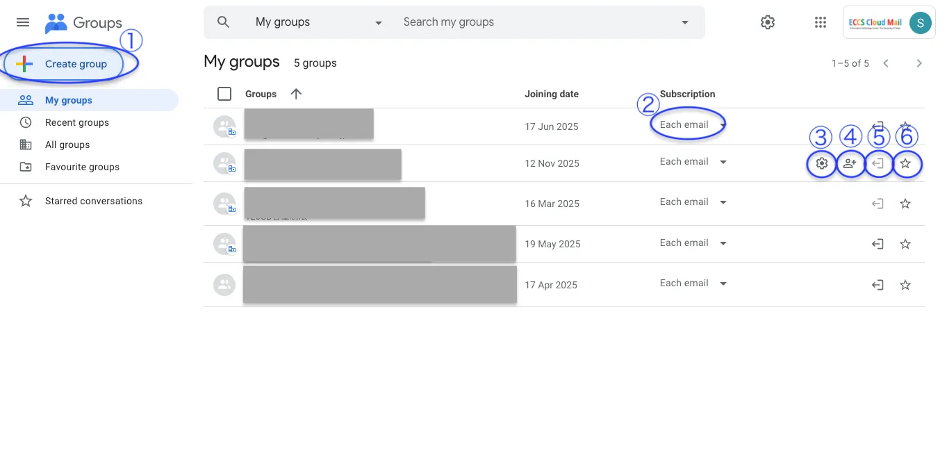 The basic functions of Google Groups for ECCS Cloud Email users are the same as those of the general Google Groups. However, there still remain differences in the areas outlined below.