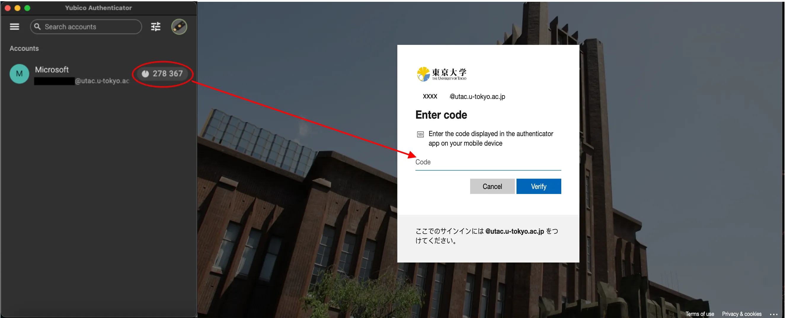 YubiKey also has the ability to work in conjunction with another advanced security system “FIDO” for the multi-factor authentication. Please refer to the “Using the FIDO Security Key for Multi-Factor Authentication of UTokyo Accounts” (in Janpanese) for more details. Additionally, even if the YubiKey has been registered as a FIDO security key, it still can be also registered through an authentication app (which is useful as it allows you to sign in to some systems where FIDO is not available (in Japanese)).