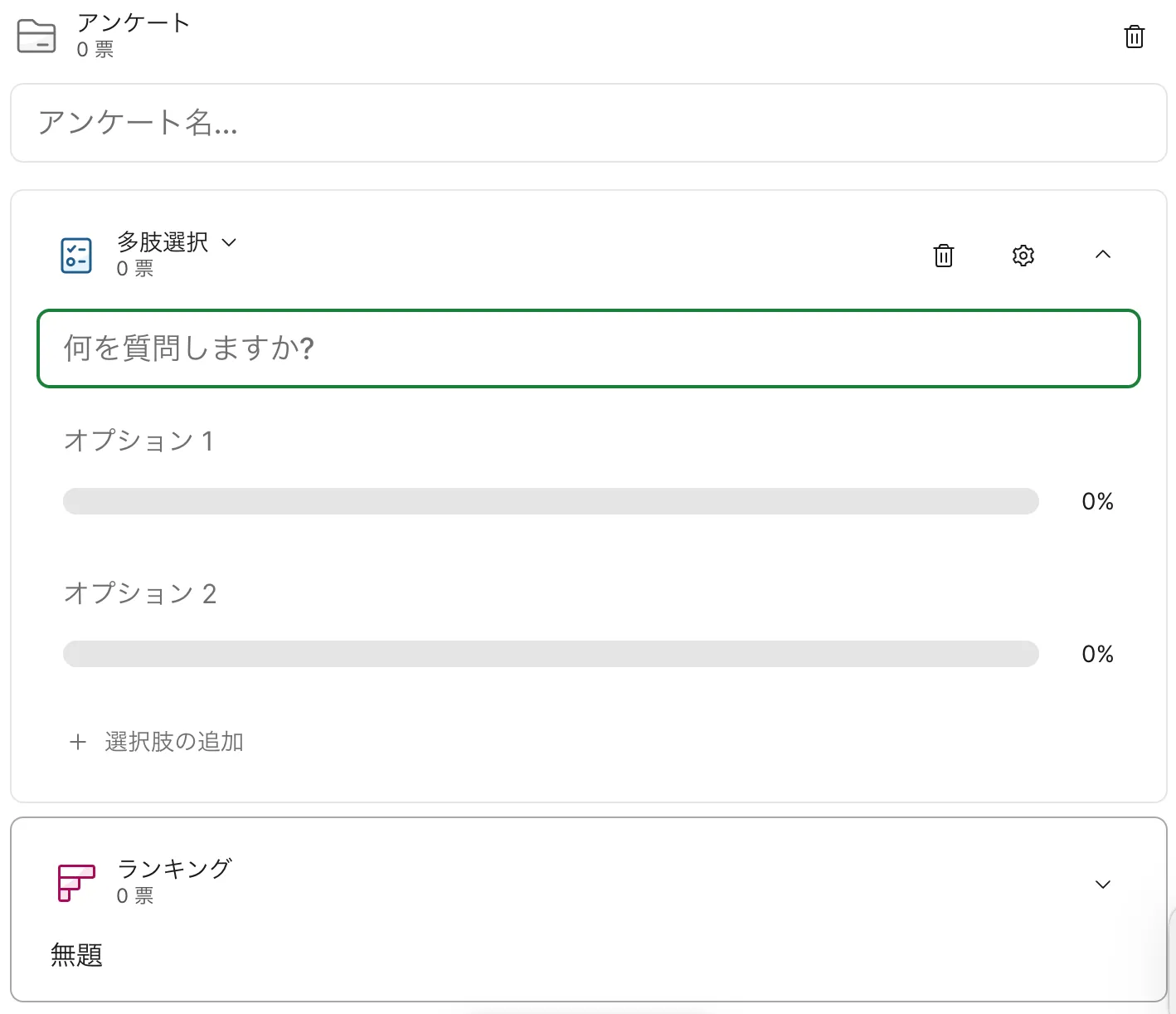- ランキングー参加者に順位付けしてもらうための複数の項目を設定する
