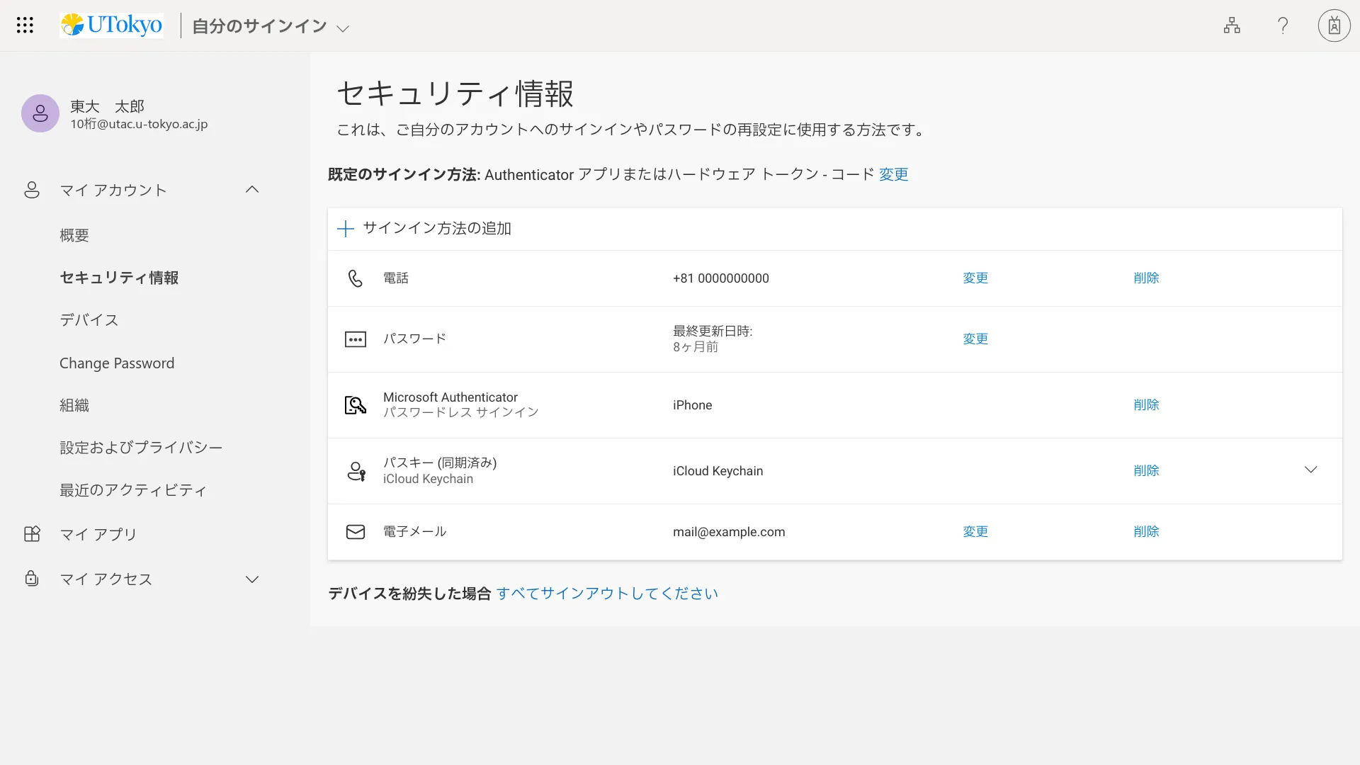 FIDOセキュリティキーは,2個目以降の本人確認方法として登録することを前提としています.多要素認証を初めて利用する方は,「UTokyo Account多要素認証の初期設定手順」の中の「手順1:1個目の本人確認方法を登録する」の手順に従って1個目の本人確認方法を登録してから,追加の本人確認方法としてFIDOセキュリティキーを登録してください.
