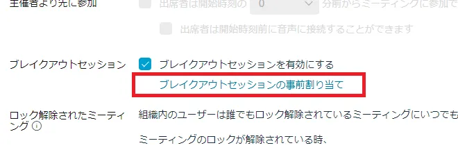 ブレイクアウトセッションは,スケジュール時に設定するか,ミーティングが始まってからでもメニューバーから有効にする必要があります.