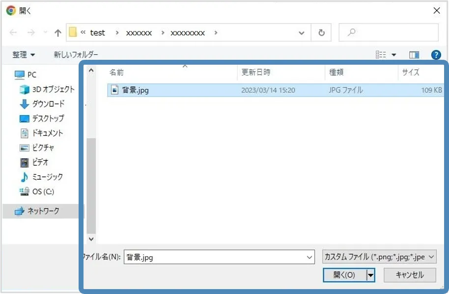 - 利用したいファイルを選択します.「開く」を選択し,ファイルをアップロードします.