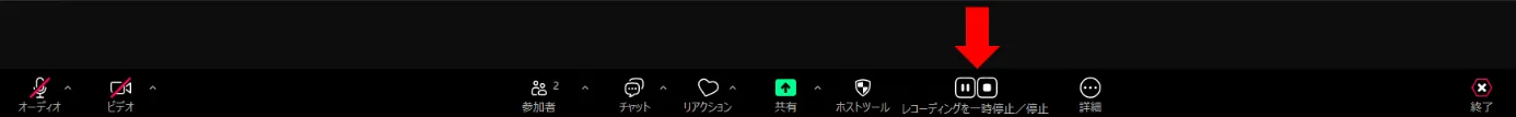 - 「レコーディングを一時停止」を押すと,レコーディングを一時停止でき,「レコーディングを再開」を押すと,レコーディングが再開します.